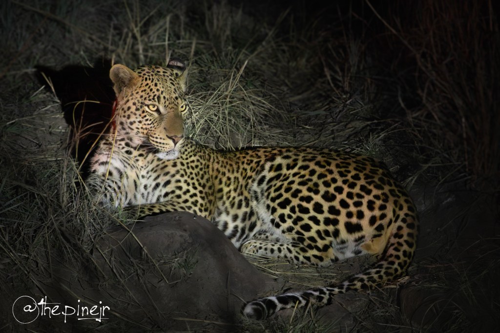 Leopard number six remains unnamed — a private sighting, completely in the dark, and utterly unforgettable. The details don’t matter; the moment does. And even if the photo was taken at 10,000 ISO and 1/100th of a second, it’s one that will stay with me wherever life decides to drag me next.